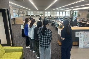 入野町社屋から住吉の新社屋に移転後の初めての開催となった為、まずは社屋の見学をしてもらいました。以前、入野町社屋のイベントに参加された学生さんからは、とても広くきれいな社屋だと言っていただきました。
