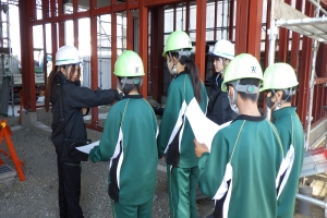 今回も前回の富塚中学校様同様、建設業とは?とアクト建設の仕事の説明、夢のマイホーム間取り作成体験、最新機器での測量体験、現場見学などを楽しく体験していただきました。