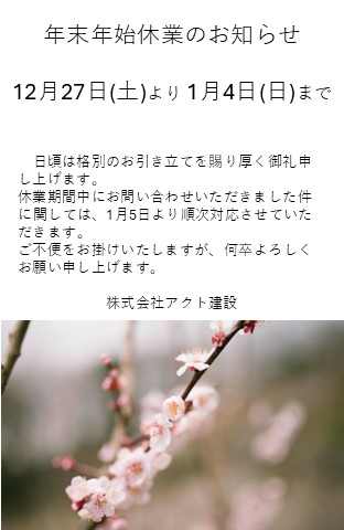 2025年12月 年末年始休業のおしらせ