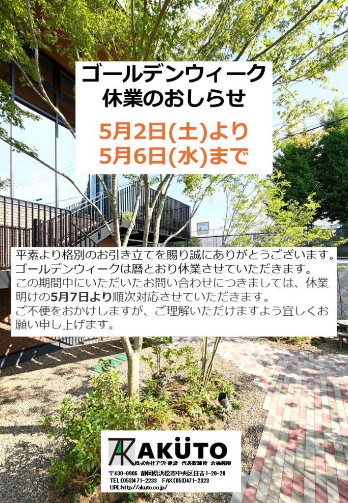 ゴールデンウィーク休業のおしらせ